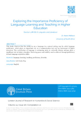 Vol. 24 No. 16 (2024): LJRHSS Volume 24 Issue 16
